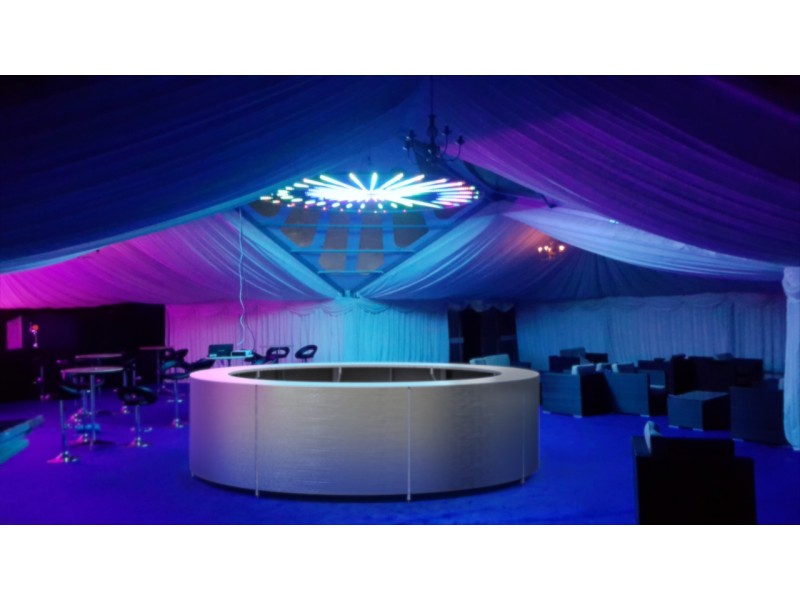 Using curved and straight lightweight aluminium frames, each 5’ in length, the possibilities for layout and function are endless.