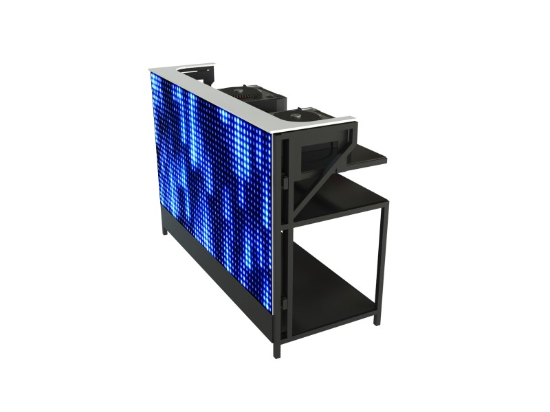 The sectional DJ Booth is a variation of our straight sectional bar unit, which is designed to support DJ equipment with an extra raised shelf and in-set counter top.
